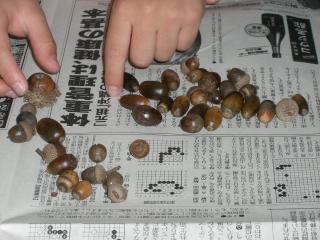 7日の”ちょっと散歩”のつもりが... についで、翌8日は神代植物公園、本日9日は浅間山(せんげんやま)公園...と、自然と戯れる(?)三連休となりました。7日は地元での単独行動でしたが、甥っ子が小学校での工作で使う木の実を集める必要がある...と、ドングリ拾いに協力する事になり、結局2日間付き合ったのでした。なんだかんだと、似たようなドングリしか見つからなかったけれど、木々の間を彷徨って探しているうちに、大人のほうが夢中になってきてしまって...そこそこ数が集まってきたら、”できるだけ形や色が綺麗なもの”を追求しだす始末 (上記写真は帰宅してから仕分けしている様子)園内地図には、バラ園とかツツジ園というエリア名は表記されていても、ドングリなどの木の実が落ちている場所は明記されていないので、クヌギとか”らしい”木々が生えている場所を探して探して歩き回る...大人三人組(妹夫婦&私)帰宅してから集まったものを種類ごとに分けて並べたりしているうちに、甥っ子が”松ぼっくりのピラミッド”を作りました そして今日。「違う種類の木の実を探してみる?」と何となく持ちかけたら、ノリノリな甥っ子。「山に行けば沢山ありそうだよね?」と何気なく口にした母。昨日に続いて良い天気だったし、”違う種類をGetしたい”という思いも無きにしも非ず...という事で私も一緒に、電車とバスを乗り継いで浅間山へ繰り出す事に。と言っても、府中市内にある標高80メートルなので、アッという間に頂上に到着してしまう山でしたが、小学生以来の登山(苦笑)だったので、懐かしかった~と、言いたいところですが、全くもっと記憶ナシでも、ちょっとした散歩のご年配の方々、子連れ、そしてワンコ散歩をしている人も多く、近所に住んでいる人を羨ましく思ってしまいました。さて。これだけ時間を体力を使って集めたドングリ達(勿論、甥っ子も頑張って拾ってはいましたが)、工作でどんな作品に変身するのか... Click先の企業が代わって募金をしてくれますご協力ください