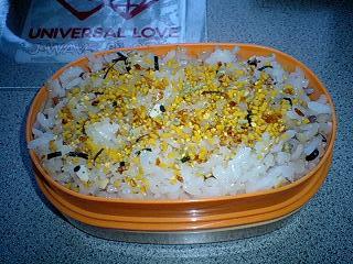 会社で食べるお弁当のご飯には必ずふりかけをパラパラします。最近は、¥100SHOPでも色々な種類が販売されているので、”日替わり ふりかけ弁当”という状態だったりしてます。そんな、本日のふりかけ弁当の味は、たまご。実はよぉ~く見ると”誰か”が隠れているんですよぉ~!見つかりましたかぁ?同じカメラアングル(携帯電話のカメラ使用)を拡大したもの=答えはコチラ!↓↓↓↓↓↓↓↓↓↓↓↓↓↓↓↓↓↓↓↓↓↓ジャンッ!SNOOPYですぅ~ って、タグ等で先に分かっちゃったかしら?使い切る一袋に、直径約5ミリくらいの小さいSNOOPYが2~3匹入っているのです。ご飯に散らした後、どこに舞い降りているのか探すのが楽しくって...子供にお弁当を作っているならまだしも、My弁当にキャラもの使って楽しんでいるなんて。ちょっとヤバイかしらん?...って そんなの関係~ねぇ~っ!!(爆)※このふりかけは、SNOOPY TOWNにて発見&購入したものです