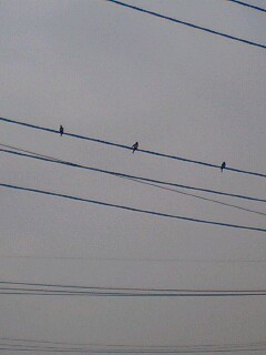 今朝はやたらとチュルチュルとツバメの鳴き声が近くに聞こえていました。確かに近所はツバメが多いけど、どうも声からすると雛っぽい?なんて思いつつ、自宅に風を入れるために窓を開けたら、案の定、目前の電線にツバメが留まっていました。雨が降るのかなぁ~?そしてふと視線を横にスライドしたら、少し離れたところにも数匹いました。数えてみたら…7羽!全てが雛なのかどうかは判断出来なかったけど、羽繕いしたり首を回したりする様子が可愛いかったので、飛び立ってしまわないように(?)カーテン越に彼等を眺めていました。しばらくしたら、1羽が急に鳴き声を大きくしたので何事かと思ったら…親鳥がやってきて餌を与えたのです。親鳥が来たら羽をパタパタさせて甘えてる~(≧▽≦)ゞというのを正味何分間見ていたのかな?(苦笑)でも。洗濯機が終わった音がしたので洗濯物を取りに行き、戻ったら…皆飛び立ったようで電線がガラーン(×_×)残念っ※携帯電話からUPしました(*u_u)