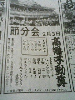 今年の“高幡不動の節分会”に耕史くんは参加しませんが、その他、参加される方々が発表されました(^O^)
