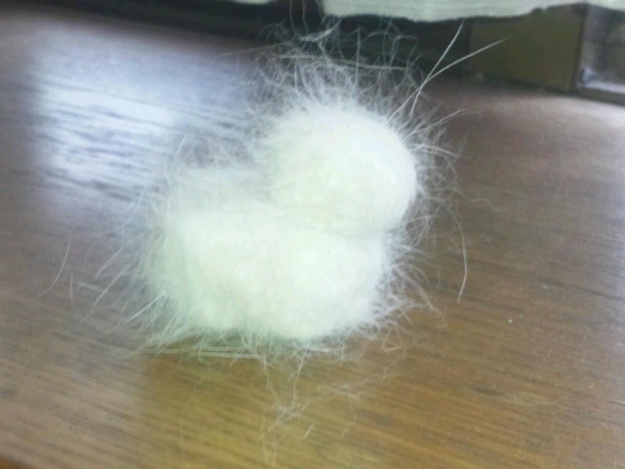 数分間で、ビニール袋の半分以上にもなる「うさげ」ことウサギの毛が集まりました。