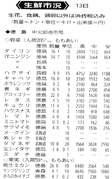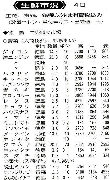 3月5日「青果市況」昨日は終日の雨で、ビニールハウスの温度管理は不要の為、確定申告を済ませて来た。農業経費が年々上昇しており、来年はサツマイモ苗の販売価格の見直しを検討しなければならないだろう。ところで、3月に入っての青果市況は2月の寒さの影響が残っており、全般的に高値維持となっている。入荷量が増えているブロッコリーは値下げ傾向にあるが、それでも昨年比5割高となっている。人参は出始めでもあり、中値で3千円越えを維持している。地元産のスダチが良い相場になっている。たぶん冷蔵スダチと思うが、1キロ3千円越えともなると一般庶民には手が出ない。間もなくハウススダチが今月中旬より出荷が始まるだろうが、これも冷蔵スダチに劣らず高値相場になるだろう。 にほんブログ村にほんブログ村読んだ方はクリックを