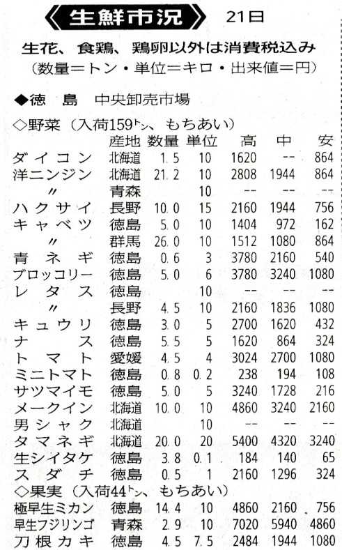10月22日「青果市況」やっと秋の気候となり、過ごしやすくなった。青果市況は、やはり北海道の玉葱が不作?により値上がりしている。目新しいのは地元産のブロッコリーが出始めて、市況相場も高値となっている。きゅうりは今週に入ってから気温の低下に伴い、収量も減ってきた。市況相場も持ち直すと予想しているが、需要も減ったのか、値下がりしたままになっている。 にほんブログ村にほんブログ村読んだ方はクリックを