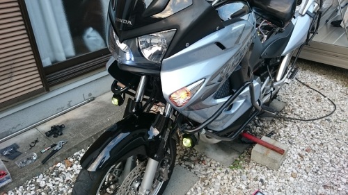 今日は暖かいけど乗らない・・・先日購入したLEDフォグランプを取り付けました配線とスイッチを付けて、いきなり取付完了10w×2個なのでリレーは使っていませんホームセンターでガス管を止める金具で取付デイライトしてもよさそうフォグだけでもなんとか走れそうなレベル。倒しこんだ時にコーナーの先を照らしてくれるように少し外側に向けています。ヘッドライトも点灯するとこんな感じ。手前の暗いところをカバーしているのでカットラインアリの商品なので対向車にはギリセーフか?実際に走ってみれば分かるのですが、夜は寒いので乗りません待望のカットライン仕様が登場!!【1万円以上お買い物で送料無料】2個セット LED フォグランプ 3000k イエロー光 スポット プロジェクター【10w 12v 24v 兼用】防水 ◆13ヵ月保証待望のカットライン仕様が登場!!【1万円以上お買い物で送料無料】2個セット LED フォグランプ 3000k イエロー光 スポット プロジェクター【10w 12v 24v 兼用】防水 ◆13ヵ月保証