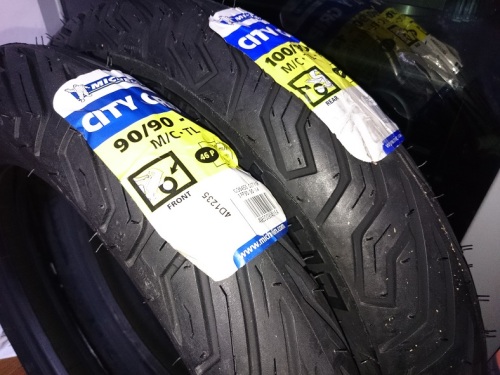 今回は通勤で慣らしをおこなったので時間が掛かりました金曜日に届いたタイヤ土曜日に配線を作って下準備。点灯テスト。朝早く起きて作業を進めようと思っていましたが、10時まで寝てしもた慌ててフロントから作業開始。今回のPCXはベトナム製。ボルトの締め付けが強すぎ。一本目終了続いてリヤタイヤ。マフラー、スイングアーム?、サス、インナーフェンダーを外してタイヤが取れる状態。ここもボルト締めすぎ2本目終了続いてオイル交換をしていると職長が遊びに。試乗してもらってからは喋りながらの作業でスピードダウン。グリップヒーターを取り付けると夕方になってしまい作業終了。ギヤオイル交換忘れたgiviのケースは本体が届かなかったので配線は次回に・・・職長もPCXを買うみたい。チョイ乗りにはお勧めの一台ですね、今回こそ大事に乗りますよ