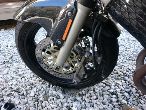 注文していたタイヤが届いたので交換ですVFRが前後セットバラデロはフロントのみマフラーを緩めて回し、リヤタイヤを外します。ビートを落としてタイヤを外しますが、このサイズは初めてなので・・・ いつものやり方では外れないのでちょっとやり方を変えれば無事に取り外せました取付けは普通にできました太くても基本は一緒なのですね。オイルパン部をジャッキアップしてフロントタイヤを外してフロントは細いのでいつもと同じげっリム曲がってる~ゴムハンでシバイて少しマシにはなりましたが、気になりますね。リヤタイヤこんな感じフロントタイヤこんな感じバラデロもフロントアップこちらはいつものことなのですんなり交換一日に3本交換は疲れます。でもオンロードのリヤタイヤも交換できることが分かったのでちとうれしい