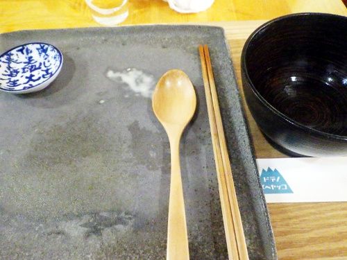 スプーンは木製、お箸は竹製かな?割り箸です。食器でも楽しめちゃいますね。