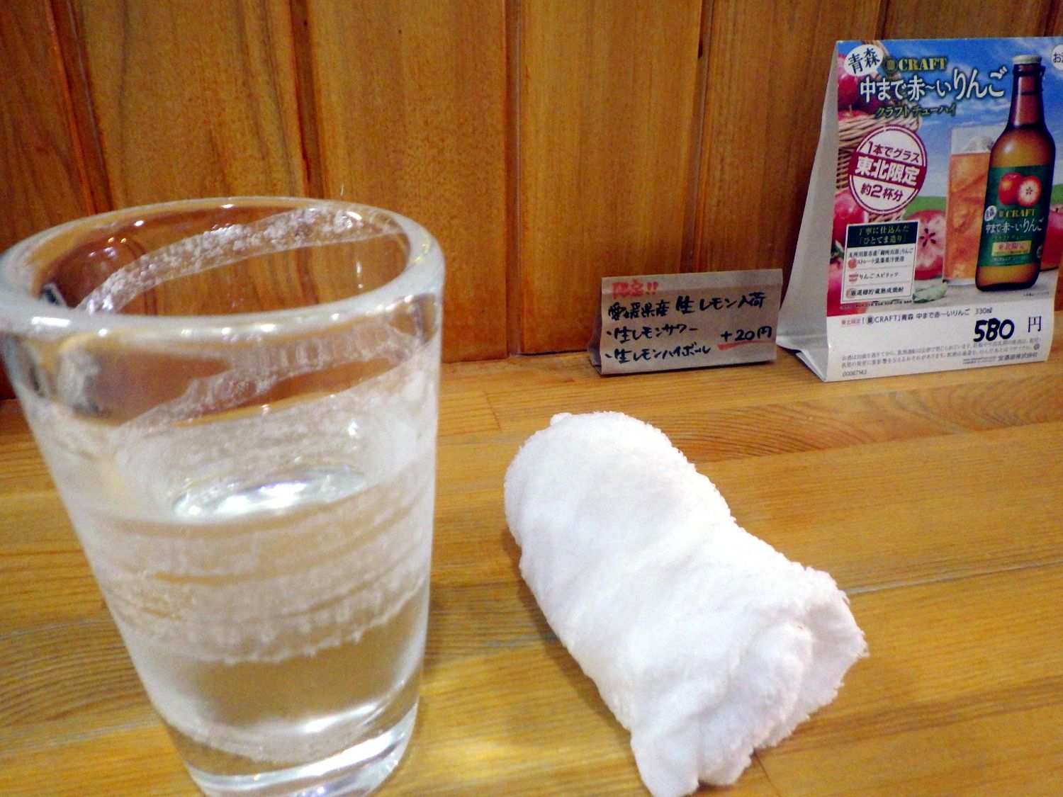 出てきたお水のコップがまた手作り感満載の、空気が入って柄のようになっているガラス製で、