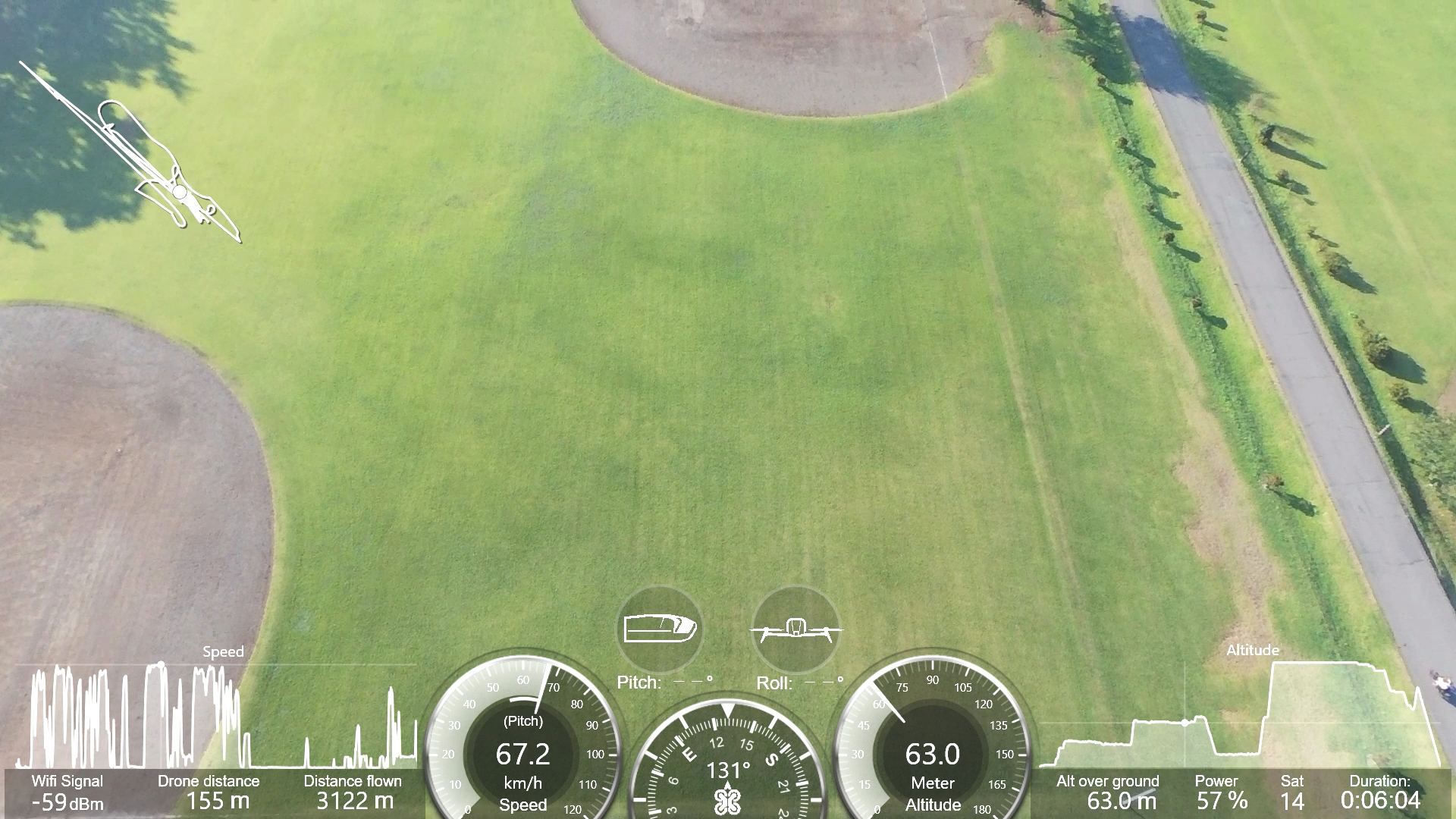 撮りっぱなしの動画で面白いものがないと書きましたが最高速を試して車を追いかけた部分に飛行データを重ねたらスピードも視覚化されるので少しは面白いかもしれないと思い作ってみました多分これが今日の最高速度…水平飛行で時速67.2Kmで、編集した動画がこちら…音はありませんし、切り出してあるので唐突に始まります(^^;スポーツモードの全部の設定をMAXにして飛ばしているので、画像が乱れないわけではありませんが割合見られるレベルに収まっています30秒あたりからワンボックスカーを追いかけ始めます…ワンボックスカーを見送ってから別の車を待ってみたけど、そういうときに限ってやってこないんですよね~2分30秒ころに仕方なく戻り始めたらバイクが画角に入ってきたのでそれを追いかけて終わってますそうそう、外部メモリーのスクリプトですが、今日は3本のバッテリーでFullHD高画質の設定で合計15.4GB・1時間14分の動画を、データ転送なしで記録できました…一部はうっかり機体内に保存しちゃったので自宅での転送は二度手間でしたけど(^^ゞ瑞穂のいつものグランドだとスポーツモードでは飛ばしにくいのですがこちらだと野球グランド10面分以上の広さがあるのでスポーツモードでビュンビュン飛ばしちゃいます(^^ゞ