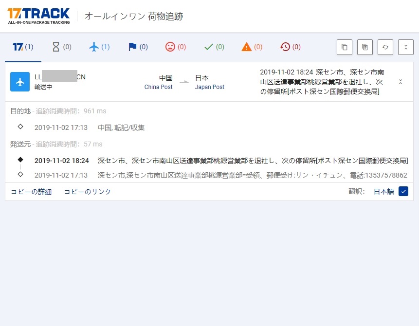 出荷から3週間経っても動きがなくセラーさんに説明しなきゃ暴れるぞ…意訳(笑)とメッセージを送り再発送となったCFLY Faith Proの続報ですすぐにトラッキング番号を知らせてくれましたがどうせまた反映しないんでしょなんて思っていましたがさにあらず…10/31に再出荷の知らせをもらって11/2の夜には…オールインワン 荷物追跡 | 17TRACKで反映されました試しに日本郵便は…わ~反映してる\(^_^)/通常海外での反映よりはワンテンポ遅れるのですが今回は早かったネタですが中国郵政も…17TRACKと同じ検索結果ですねちなみにEMSと書かれていますが日本人の知っている国際スピード郵便ではありませんePacket…日本では国際eパケットという扱いになるのかな海外からの場合日本に入ってからは追跡できなかったしポスト投函だったので日本で言うところの定形外郵便みたいな扱いだと思っていたのですが今回は日本郵便でも反映しているので料金よってなのかな?…それとも発着国がからむ?まあ何にしてもトラッキングに載ったので今度は間違いなく到着するでしょうやっと胃が痛い状態を脱出できそうです(^^;