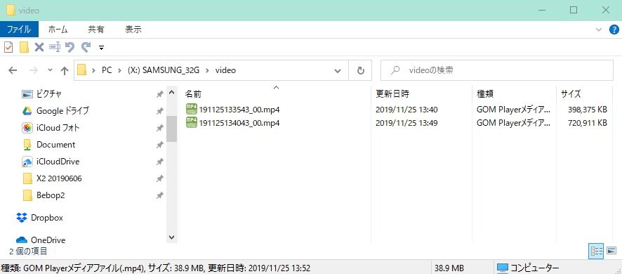 新しいおもちゃですが、録画ファイルがいつの間にか…こんな風に分割されてます私の操作が悪いのか、それともドライブレコーダーのように自動で分割しているのか確認しようと飛ばしてみました。冒頭のキャプチャーでも2つのファイルが生成されていますが、録画ボタンは離陸時に一度押しただけです。ファイルを確認すると398MBの方は4分59秒720MBの方は9分合計で13分59秒…だいたい飛ばしていた時間と一致なんですが欠落があるのかどうか…繋げてみましたスムーズに繋がっていて、これを見る限り欠落はないみたいです1コマづつ確認したら落ちているかもだけど、通常再生で私には違和感を見つけられないで、想像するにこの機体では機体⇔コントローラー⇔スマホと言う形で接続されていてコントローラーで録画を始めるとスマホ上に録画時間が表示されるのですがスマホとのリンクが怪しくなると表示が消えちゃうんです。そのタイミングでファイルが更新されるのではないかと考えました ※これは私の想像なので正しいとは限りませんが、そんな挙動だよな~ということです以前テストしたときは表示が消えているので、再度録画ボタンを押していましたがそのため逆に録画停止状態になるとか、そんな感じではないかな~となので、表示がどうあれ飛行全体を録画するつもりなら、表示がどうあれ録画ボタンは押さない…という感じになるのでしょうかね~Bebop2の用にコントローラーと機体の接続は有線式にすればもう少し安定したのかもそんなわけで、飛び立ってから降りるまで15分ほどをまとめて撮影したけど分割されていたというお話でした(^^ゞ