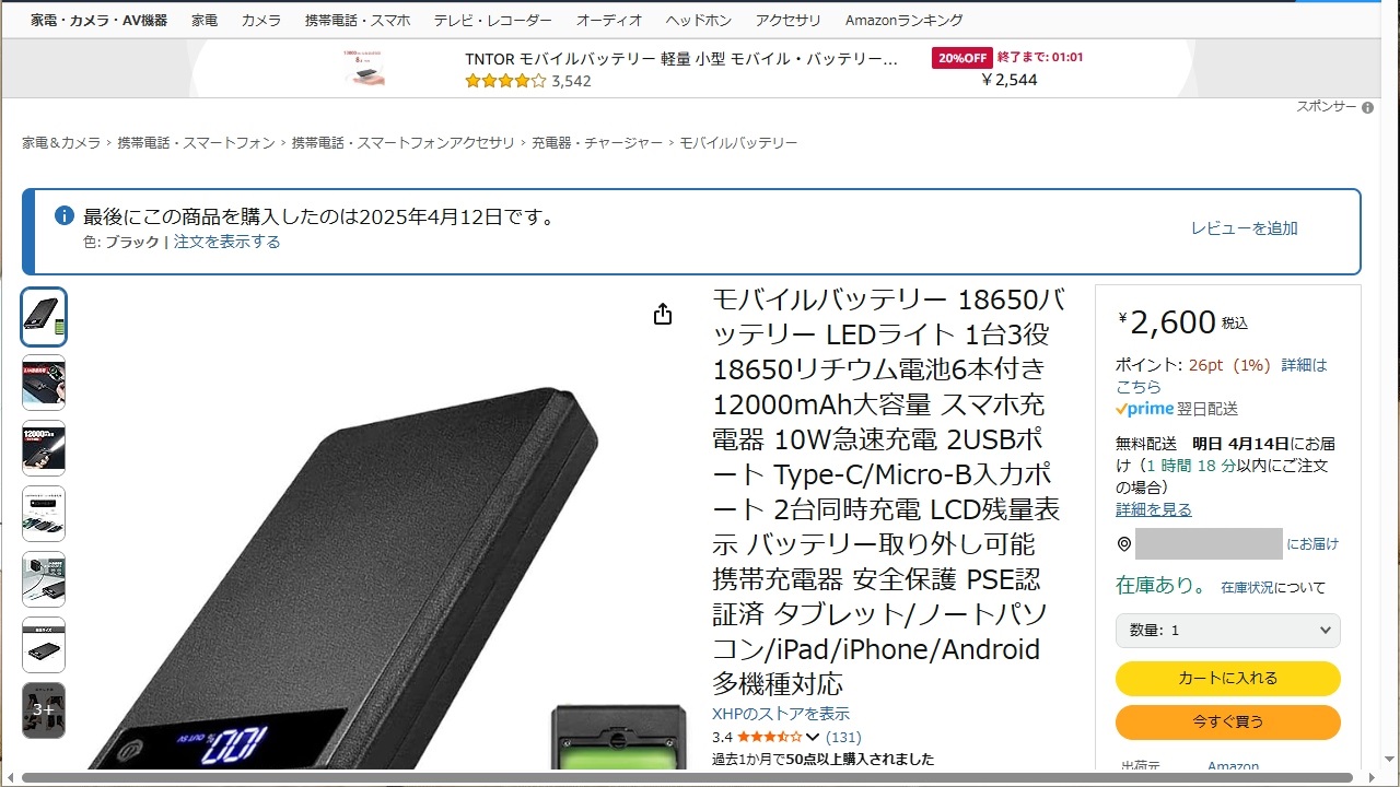 18650リチウム電池が目当てでモバイルバッテリーを買いました…けど無駄遣いだったかも(^^ゞ購入したのは…モバイルバッテリー 18650バッテリー LEDライト 1台3役 18650リチウム電池6本付きなんで、唐突に18650が欲しくなったのか…それは…だいぶ前に取り付けた太陽電池式のガーデンライトが点灯しなくなったんです…症状として太陽電池に光があたっている間はインジケーターが点滅してますが暗くなっても照明がつかない…なので回路は正常でバッテリーがイカれたんでしょうまあ買ったのが2021年10月末なので3年以上文句も言わずに人の出入りに合わせて光ってくれていたので文句はありませんでも点灯しないのは困るので手持ちの一番新しい状態の良いものを入れてやったんですライトの方はそれで復活して良かった良かった…なんですが…手持ちの状態の良いものが半端になってしまったので手に入れておきたい…というわけですで、到着が夜になることはわかっていたので自室を漁ったら…こんなのが出てきたんです電池を入れて使うモバイルバッテリーキット…だったはず…以前過ぎて自信がありませんどうせダメダメバッテリーが入っているのだろうと開けてみたらサムスンの結構状態の良いバッテリーが入ってまして…いつ充電したかも覚えてないくらい放置していましたが、使えるくらい容量が残っていてさすが昔のサムスン製(?)と言った感じです充電しましたが十分使えそうな雰囲気…なんて事をやっているうちに…到着しちゃいました18650リチウム電池6本付きモバイルバッテリーキットついでに…18650 電池ボックス 8個セットも買ってしまった(^^ゞだって~素性がよくわからないバッテリーが来るだろうし…こんなのとかこんなのがあるので充電容量を確かめておきたいじゃない~到着したバッテリーは残容量75%くらいだったのでそのまま保管ですね…と言うことは今日買った2600円のバッテリーセットは全部無駄遣いになっちゃうねとりあえず発掘したサムスンのバッテリーを放電させて充電容量を確認位はやりたい明日にでもケースを仕立ててやってみようと思ってます…今日は明け番で眠いのでね(^^;ということで、なんかとっても無駄遣いな買い物をしたというお話でした