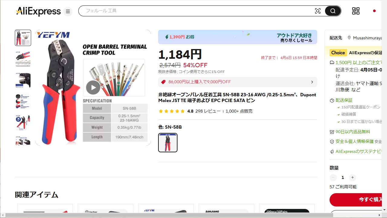 例によってAliExpressのミニゲームのポイントが欲しくて買い物をしました(^^;…ゲームの話はネタにもならないので書来ませんけどで、今回の値段合わせで買ったのは…非絶縁オープンバレル圧着工具SN-58B 23-16 AWG /0.25-1.5mm²Dupont Molex JST TE 端子および EPC PCIE SATA ピン…タイトル長いって(^^ゞオープンバレル端子…アマゾンで検索するとこんなのが出てきます…車の配線などでよく使われる圧着端子の類です以前にコムスのバッテリー追加のときにも圧着ペンチを買っていますがその時の端子とは別物です値段合わせではありますが…型番的にほぼ同じものなはずですがだいぶ値段が違いますもともと一応は持っています…いつ買ったのか思い出せないくらい昔に買ったものですけどこんなやつねペンチ本体といくつかの圧着端子のセットで1000円しないようなものだったはずです持っていたものは、こんな刃先で芯線と被覆部分を2回に分けて圧着します今回注文して到着したもの今回購入したものはは先に厚みがあって芯線と被覆部分を一回で圧着してくれます別の話ですがこのカシメ部分通常とは逆になっています一回で2箇所を圧着する関係で向きがありますが利き手が左なので刃先部分を入れ替えました…決してこの状態で届いたというわけではありませんで、中華な安い工具だしそんなに期待はしてませんでしたが圧着してみたら説明しなくてもどちらが新しいものかわかると思います…まあ説明するんですけど(^^ゞ手前のオスメス2本が古いもので、奥の2本が今回買ったもの端子がよじれたようになるのは2回に分けて圧着するのでどうしてもそうなっちゃう奥の2本はそれがきれいに揃って真っすぐに圧着できています端子の曲がり具合もきれいだけど、それは端子の素性もありますが…ということで…大雑把に言えば一回で済むか二回カシメなければならないかだけなんですけど車の配線をよくいじるなら持っていても損はないかもと言う圧着ペンチを買ったお話でした