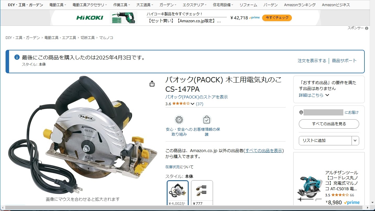 丸ノコにはちょっと恐怖心があって買っていませんでしたが…とうとう買ってしまいました…当然ながら一番安いものですけど(^^ゞ電動のレシプロソー←こんなやつ多分ものとしては高儀(Takagi) 電気のこぎり EARTH MAN AC100V DN-100これと色違いの同じものだと思います…数年前にケーヨーデイツーで4000円で買いましたそれからジグソー…こっちはいつ買ったのかわからないくらい古いもので替刃を固定するネジが折れてしまってにっちもさっちも行かない状態でしたで、先日買ったネジ抜きビットが使えるのではないかといじっていみましたが結局あれでは抜けなかったのですが、残っているネジをドリルで揉んで新しいネジ穴をタップドリルで切ってやることで復旧させましたこの2種類は持っていますので、大雑把なカットは出来ますが大物を断面をきれいに直線でカットするのはなかなか大変なんですよねジグソーの新しいもの(中古?)を買おうと思っていたのですが復旧できたので、それじゃあ、近々やりたいこともあるし、その分で丸ノコ買えるのかな…と探して…パオック(PAOCK) 木工用電気丸のこ CS-147PAラスト1台だったのでご覧の通り売り切れちゃっていますがプライム配送で4002円でした別件で書いているコムスのコンソールBOX絡みでも使い道があるかな~とか考えました一応使いましたけど(^^)レビューを見ると刃がダメなのでよく切れるものに即交換要なんて書かれていましたが…まあ、こんなもんじゃないのでしょうか…知らんけど(笑)そして復旧したジグソーの方は、金属用の刃しか残っていなかったので木工用の各種の刃のセットの安いやつ…ビッグマン(Bigman) ジグソーブレード 木工用セット JS-101こちらも購入しました普通刃回し引き用それぞれの仕上げ用高速切断用の4種でこの値段なのでうまく使えれば格安ですね木工作業でも夜中にやることが多いのですが、さすがに電動ノコギリの類は使えませんやっちゃう時にはやっちゃうんですけど(^^;それでも日中戸外で大物を切ったり貼ったり…なんて言うときには働いてもらいますのでね当座のやりたいことは丸ノコを使ってうちの床のフカフカしているところをなんとかしたいと思っていますが、いつできるかな~いや、床を張り替えようなんてだいそれた事を考えているわけじゃなくて床材の上に板を敷いてしまおうって考えてます※根太(ねだ)はしっかりしているんです…根太ではなく床材がヘタっているみたいです3尺×6尺の板を2枚切り刻んでやれば十分貼れそうですが、形を作るのが面倒なんだよね大切りに丸ノコ調整にレシプロソー微調整にジグソーという感じでしょうかねということで自分の購入記録としてネタにしちゃったと言うお話でした