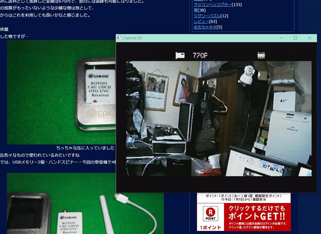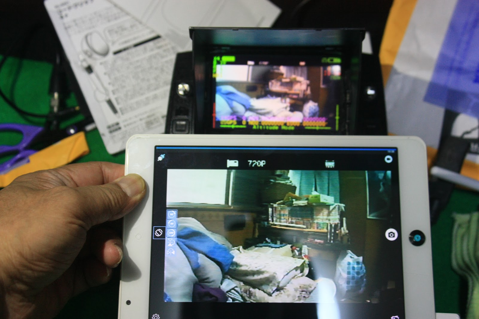 ピントが怪しいですが、H502Sの映像をプロポと同時受信