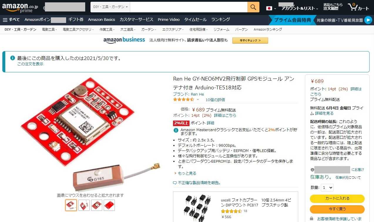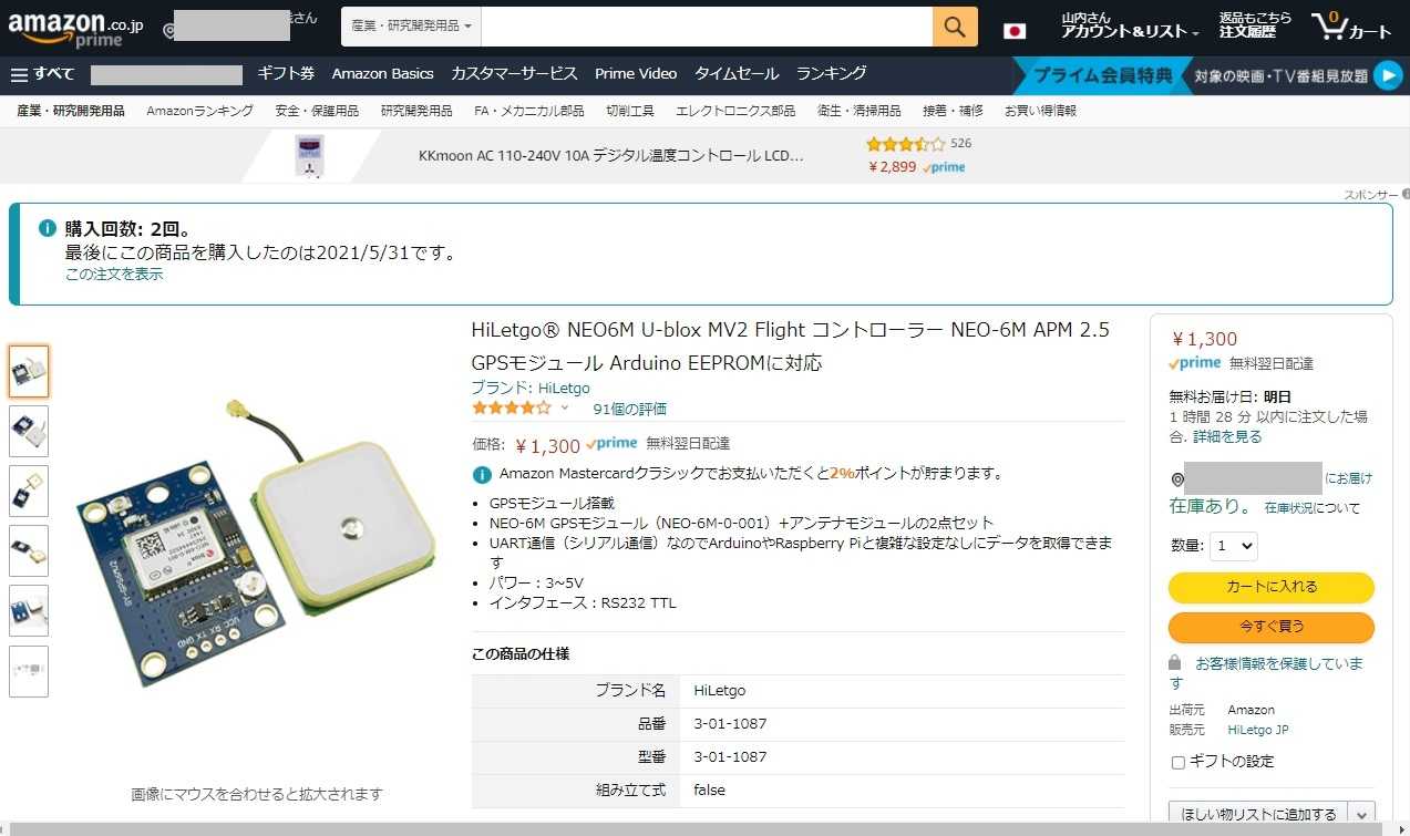 なんとまあ、プライム対応で700円しないGPSモジュール…