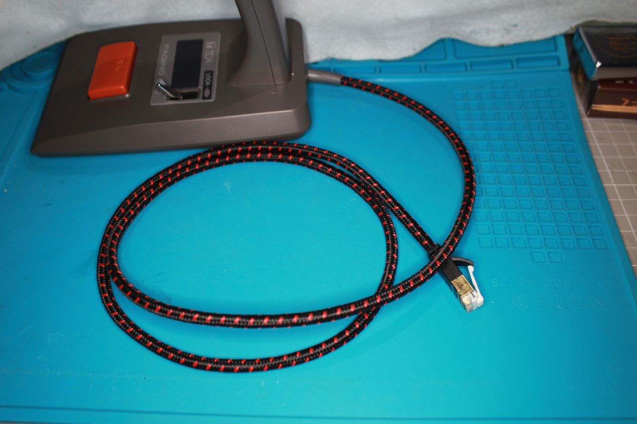 で、RJ45というモジュラープラグなので、マイクケーブル代わりにLANケーブルを使ってます