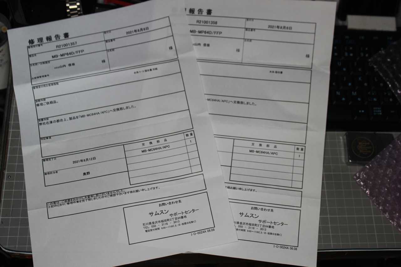 8月3日に修理交換に出した