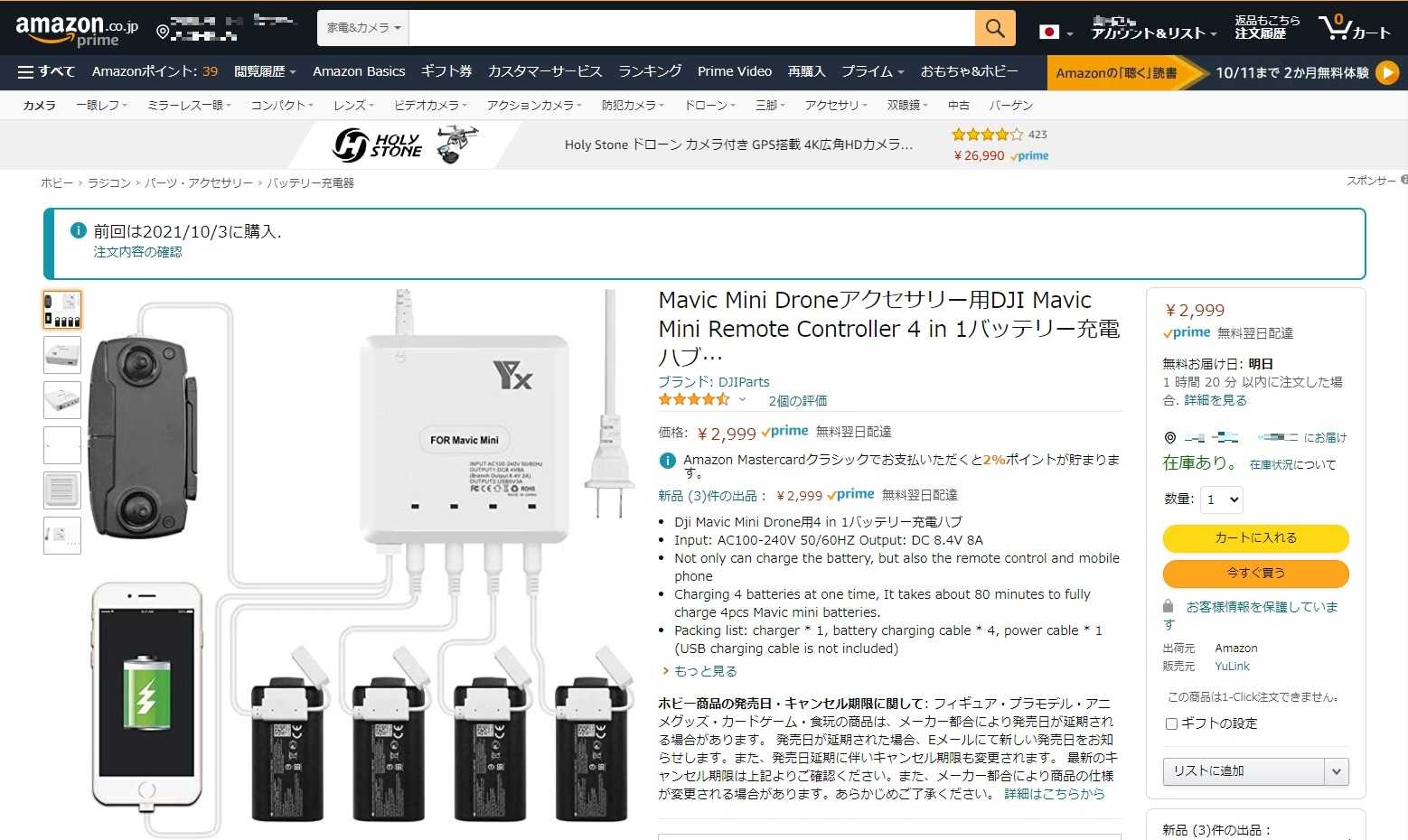 ということで、安くなっていたMavicMini用の充電器を買ってみたというお話でした