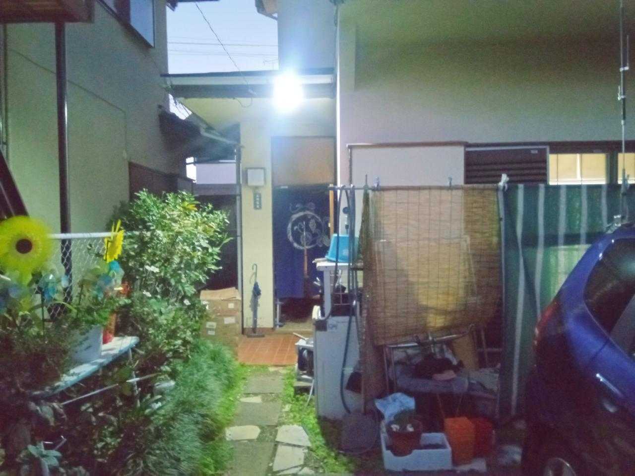 写真の表札の上の四角いポーチライトにも人感センサーを組み込んであるので、