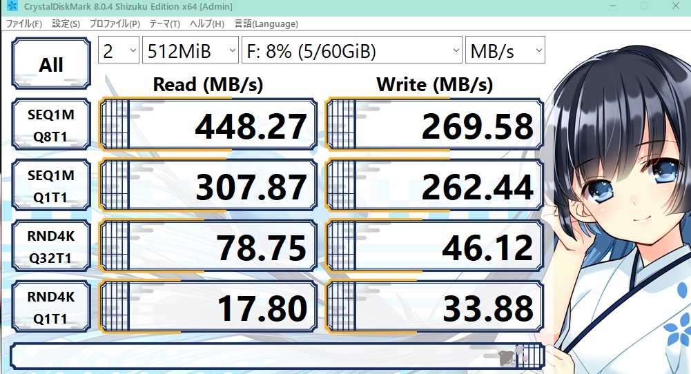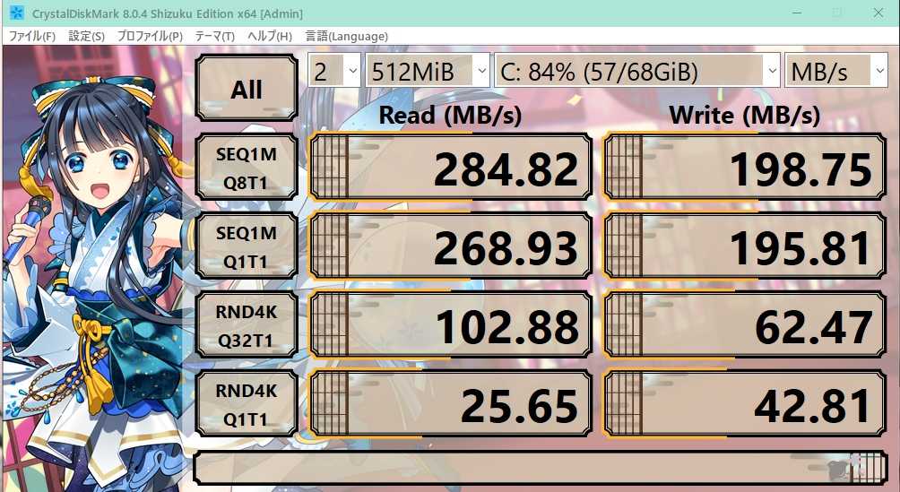 今の御時世だとこのスピードでは「遅い」のかもですが、うちのPCたちの中では