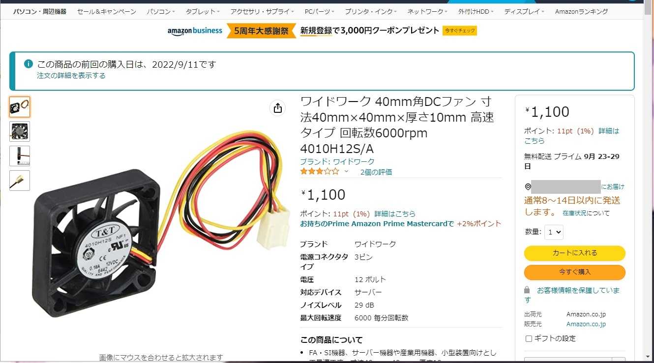 高速ファンの方は、先日​ 3Dプリンター用の在庫 ​を取り付けましたが
