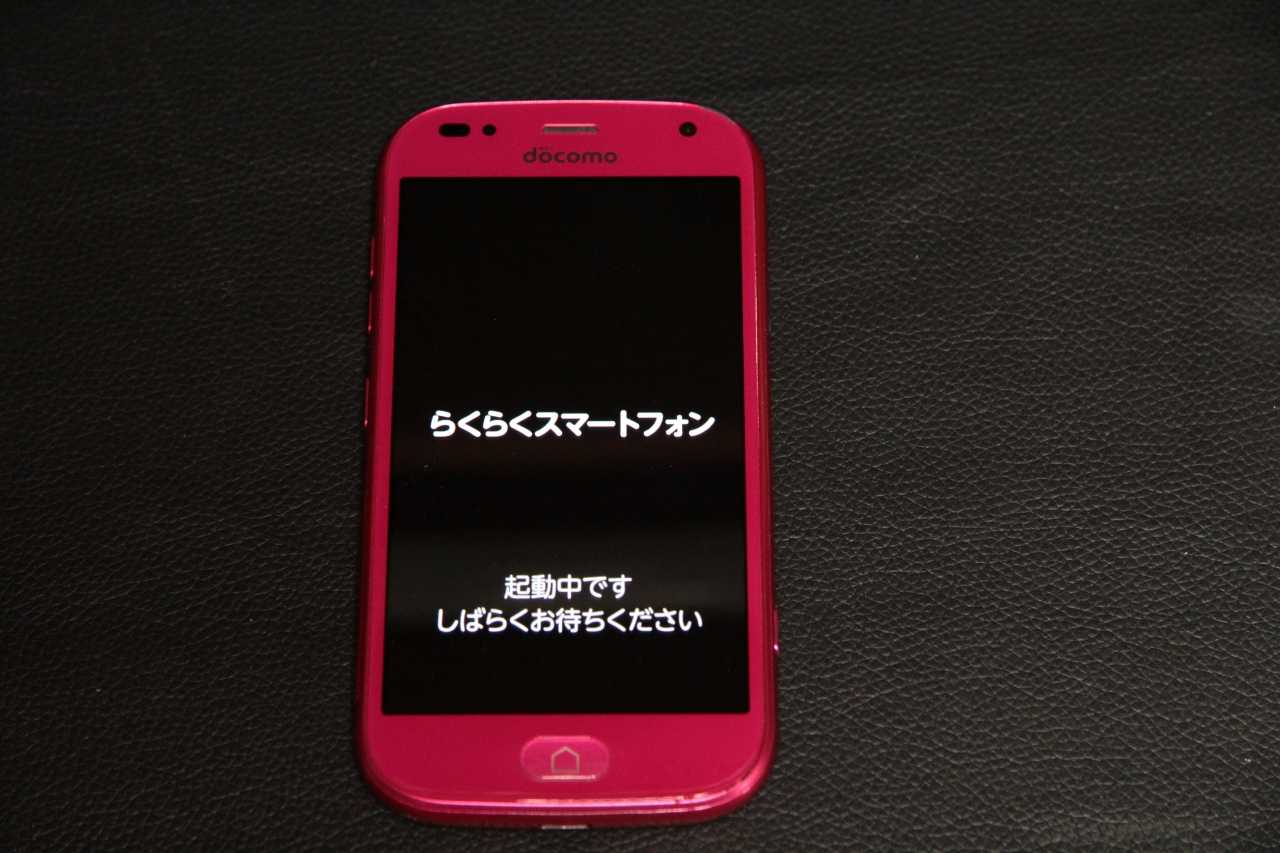 らくらくスマートフォン起動中…上の写真ですでにセットアップ画面ですが…