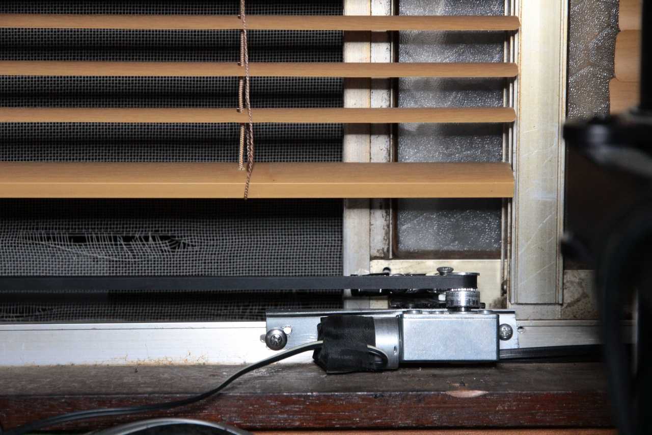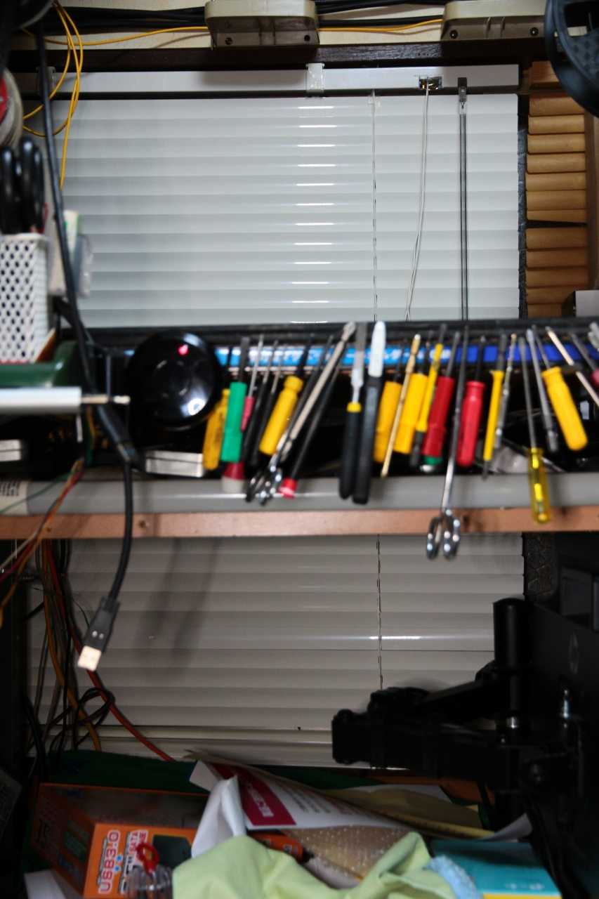 ラックの中段…ディスプレイが横になってブラインドが見える状態