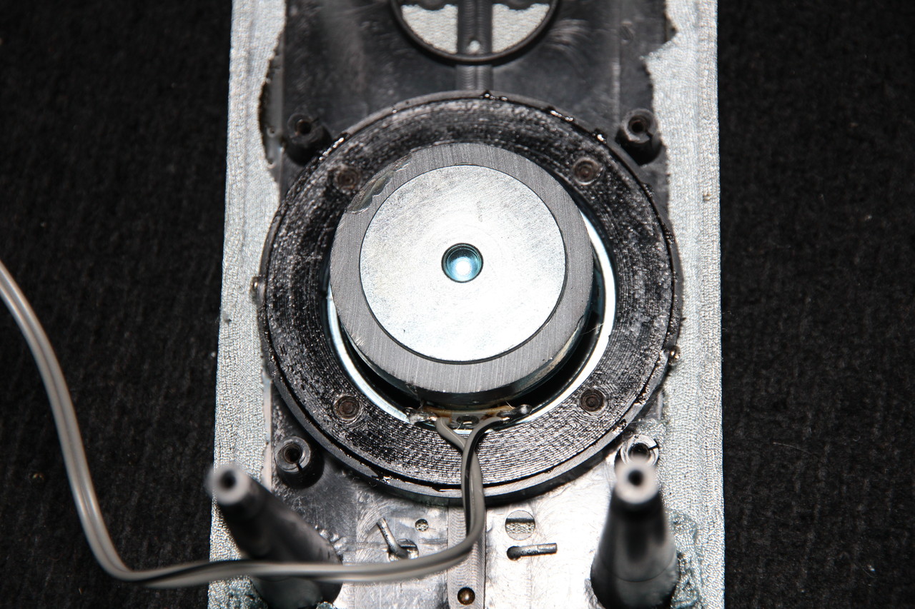 フロント側から補助材にスピーカーをねじ止めして、それを接着剤とネジ併用で固定