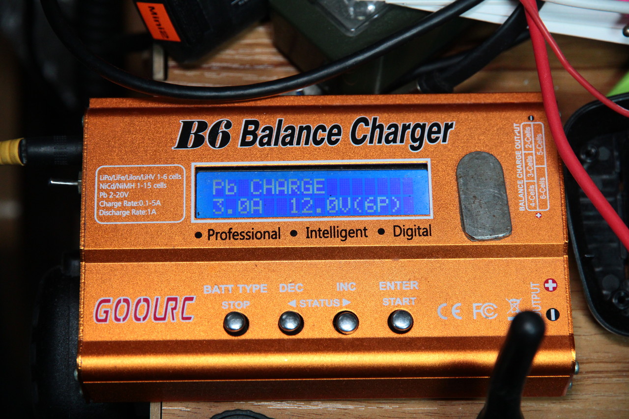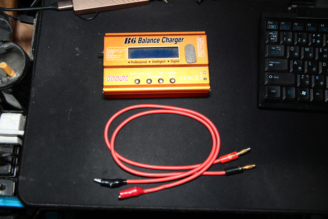 ということで、ラジコン用充電器で車のバッテリーを充電して