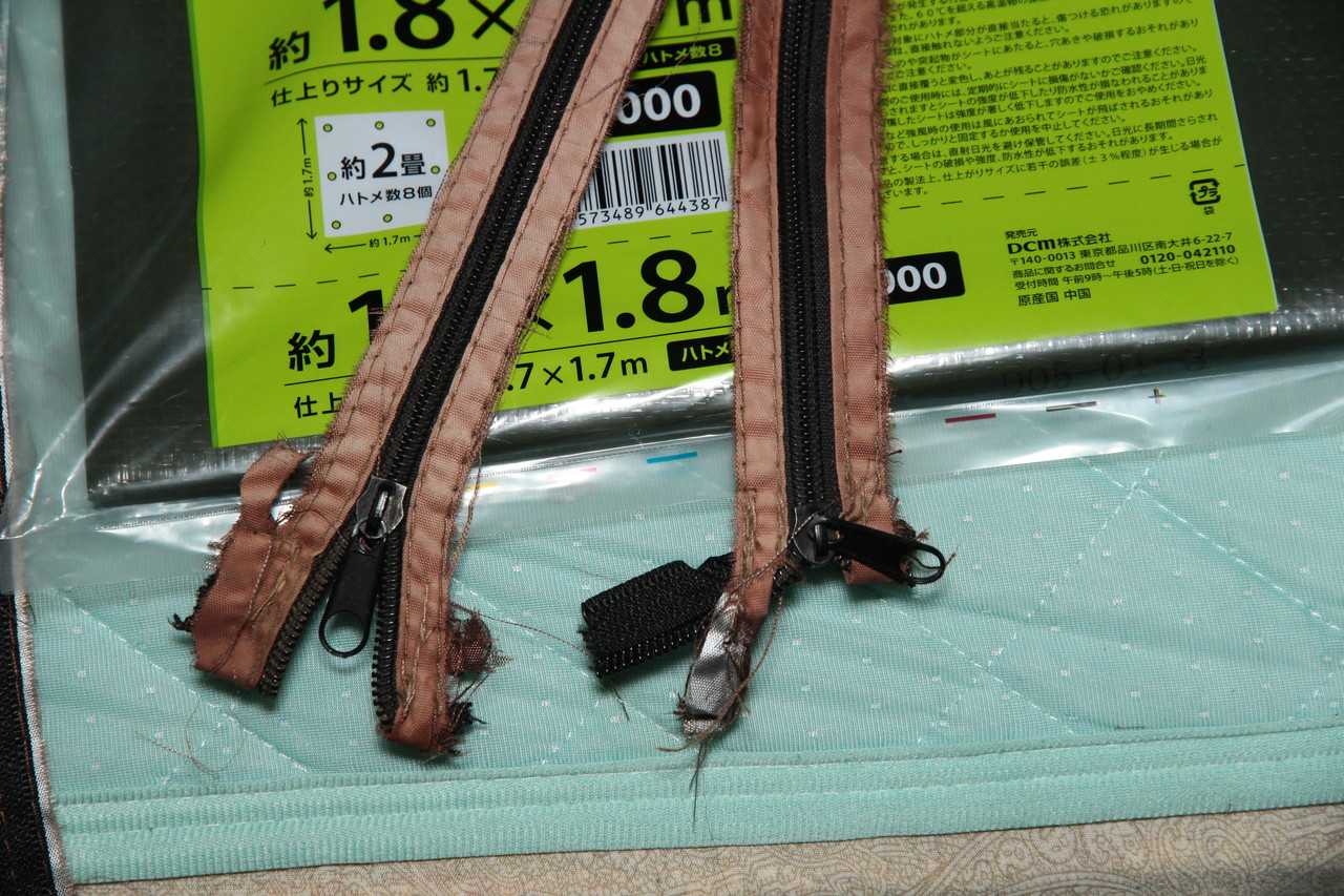ただ、写真のように入口のファスナー部分が怪しい…テープで補修していますが