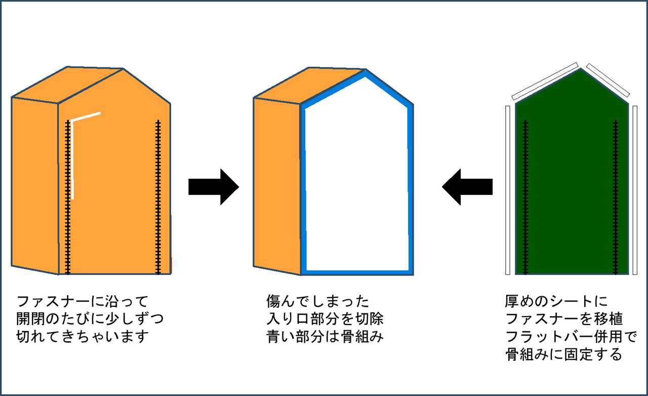 ということで、バイク用のサイクルハウス転じて物置の入口の痛みが酷いので