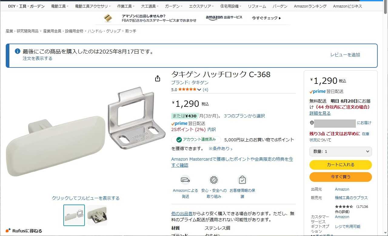 Amazonで検索したらハンドル部分の部品が見つかり