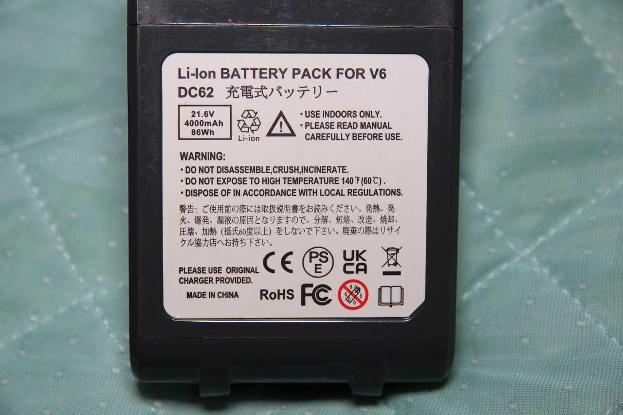 2023年10月に買った​​DTK 交換用 ダイソン V6 バッテリー 4500mAh