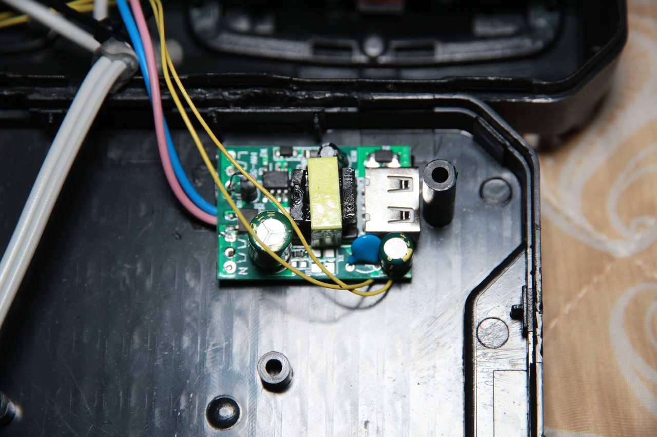 ということでUSB充電器の基盤を押し込んで5Vを別途作ってやることにしました