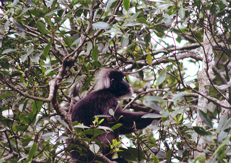 右側手前の後ろ向きに写っているのはカニクイザル! そして、リーフモンキーとカニクイザルがこんなに近くで仲良くしているのが珍しい!