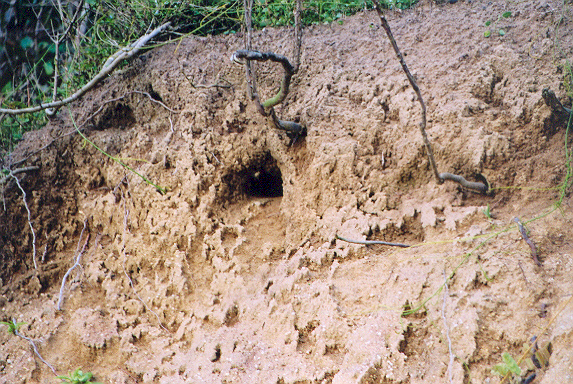にほんブログ村土手に巣を造るカワセミだが、天敵は蛇だ!その天敵を惑わす巣の造り方、横穴を幾つも造り、その中の一個だけを使う!