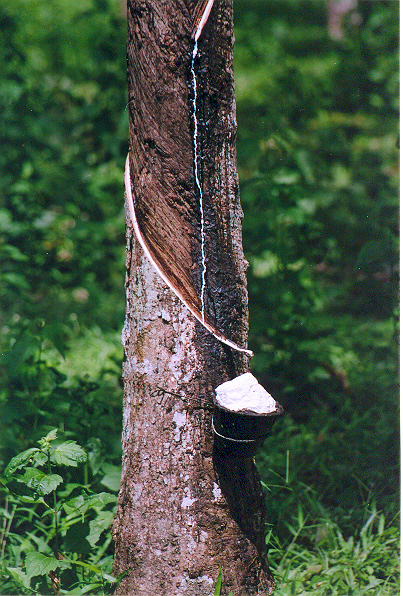にほんブログ村 島の中にはゴム園がかなり残っているが、忙しそうに樹液採取されている!