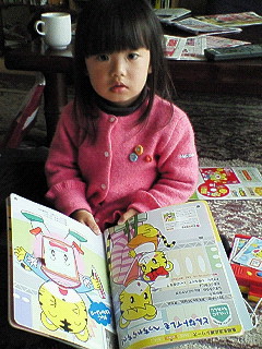 さぁ~て、 熊本です。 郵便受けに入っていた、 今月のしまじろうも福岡からもってきました。 それを見つけるや、 みこってぃは急いで駆け寄ってきて、 袋をびりびり。 すぐに本を開きはじめました。 しまじろうパワーはすごいですねぇ。