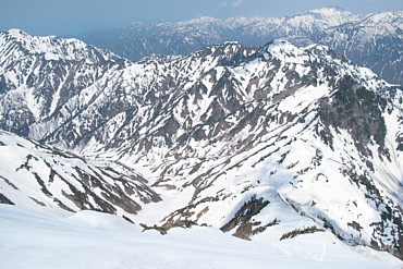 楽天の広告がジャマで、ブログのクチコミテーマが選択できずにイライラしているやまやろうです。仕事に関してもイライラ。今日も新たな課題追加。時間がないよ。それでも次々と仕事がやってくる。本業以外の雑用だ。GWの写真や記録もまとめたいが、時間がない。これらの対応には集中力を要するが、今やまやろうにはその力はない(日中で使い果たした)。酒でもちびちびやりながら、読書してゆっくりしたいのだ。一枚くらいは出しておこう。GW山行3日目の毛勝山通称天国の階段から、剱岳北方稜線を眺めたもの。左端が越中駒ヶ岳、中央右真ん中のコブが滝倉山ですな。右方の黒々としている斜面辺りがウドの頭である。