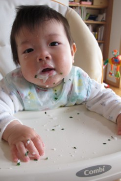 いよいよ明日に迫ったGW山行である。早いものである。道具は揃っているから後は個人の食料だけ用意すればよいので、準備はいつも前日だ。こらどまを幼稚園に送ってから玄関先で道具を広げる。アークテリクス アクシオス50の本格デビューとなる。容量50Lながら、3泊4日の道具が入ってまだ余裕がある。ここに共同装備を追加することになるが、グレゴリーの72Lも同じような入り方だった。何なん?午後は溜まったブログの更新や来週の出張準備などで忙しい。幼稚園へ迎えに行った嫁さんはそのまま実家に向かった。午後は独りでのんびりできるはずであったが、夕方までパソコンの前に居続けた。読書すらできなかった。心配なのは天気である。数日前から週間天気予報はチェックしていたが、日増しに悪い予報になってきた。今日に至って、山行前半2日間が雨模様の予報となってしまった。それでも入山するのか、延期して後半2日間でできる山行に変更するのか、今夜皆と相談だが、やまやろうとしては予定通り入山にしたい。朝食後の次男坊。スプーンで食べさせているが、時折掴んで自分で口に運ぼうとする。その汚れた手で顔やテーブルを触るものだから、過去例を見ないほど荒れた食後風景となった。これも成長の証として、黙々と片づけたやまやろうであった。