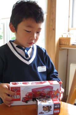 長男の誕生日。プレゼントは嫁と相談して、前から決めていた。朝出すか幼稚園から帰ってきてから出すか迷ったが、善は急げと朝に出した。ジャーン、カーズの「マック」と「メーター」です。「マックイーン」は2年前にプレゼントしている。ようやく揃ったね。「プレゼントぉぉぉ欲しいぃぃぃぃー!!!!!」と号泣するむすめ。何か勘違いしていないかい? あなたの誕生日は12月です。この日ばかりは太陽の高いうちに退社して帰宅する。先ずはケーキを出してローソクを立て、はぴばすでつーゆー。その場面は毎年動画を録っている。おめでとう。ハッピータイムは生で見た。当然録画もしているのですぐに再生。今年の料理は彼の好きなハンバーグ。ケチャップで輪っかを作って、その中にソースを垂らすのがお気に入りの味付け。ご飯を用意するのを忘れたら、ハンバーグだけペロリといってしまった。やまやろうと嫁は、お祝いということでワイン。食後にケーキ。黒部市のパパぱんの店に依頼。箱に手書きのメッセージカードが付いている。こういうひと手間が、顧客にとってはぐっとくるものなのだ。甘さ控えめでその分イチゴの酸味が際立ち、全体としてスッキリとしたお代わりのできそうな味に仕上がっている。まあ、明日帰宅しても残っていないだろうから、今夜のうちにガツンと食べておくやまやろうであった。