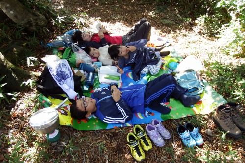 食後はレジャーシートに寝転がってくつろぐ。