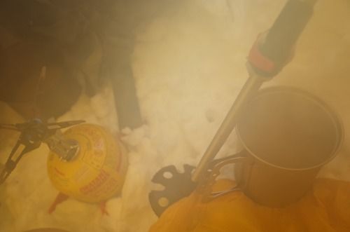 h田さんがてきぱきバーナーを出して湯を沸かす。
