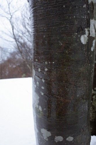 急斜面ではバケツ(踏み固めた雪のステップ)が