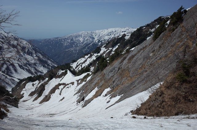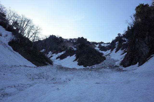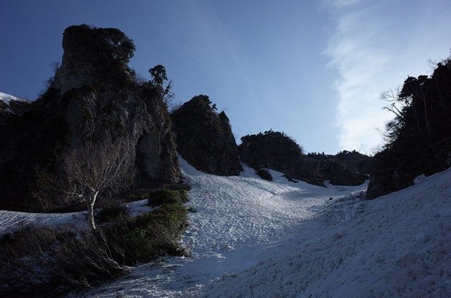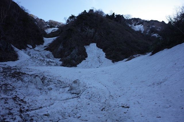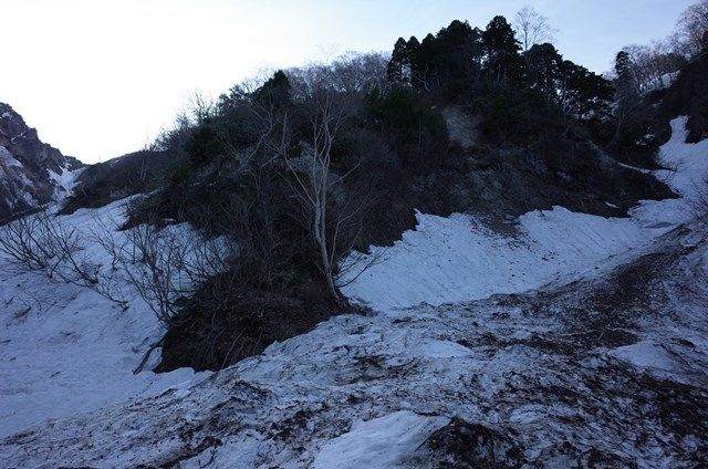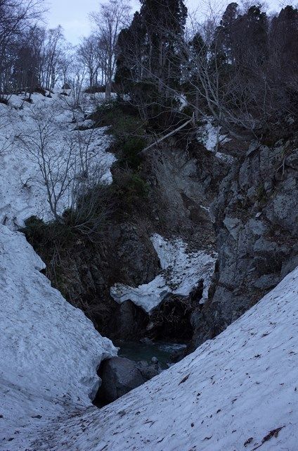 高巻きの後、作之丞谷はほぼ雪で埋まっている。