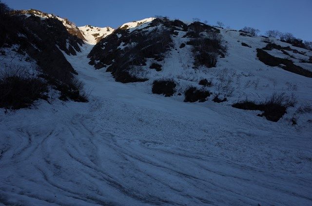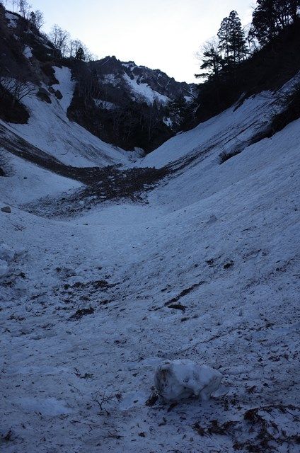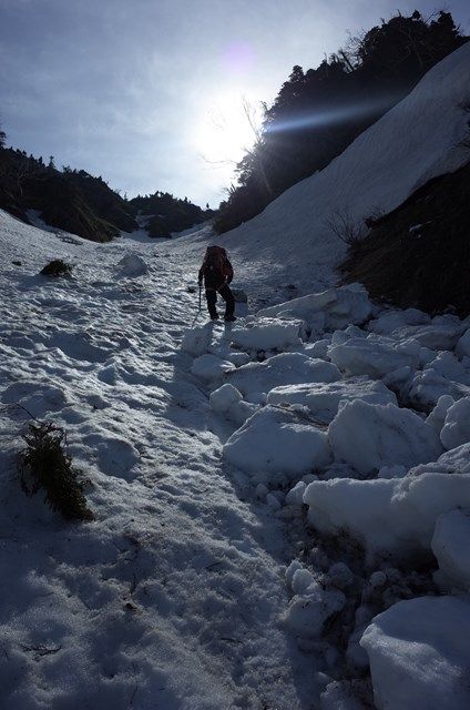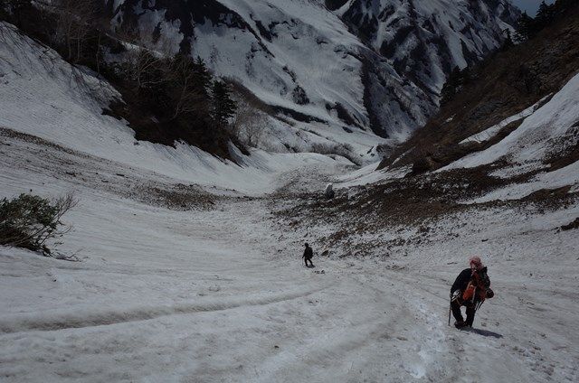 沢登りなら楽しいだろう、今は単なる雪渓歩き。
