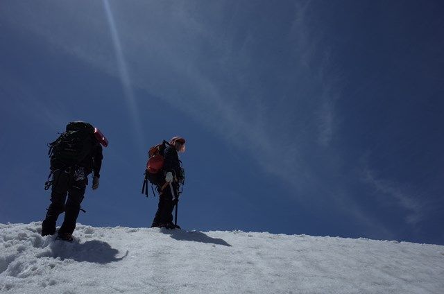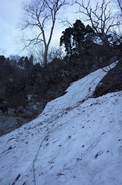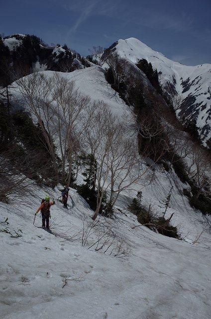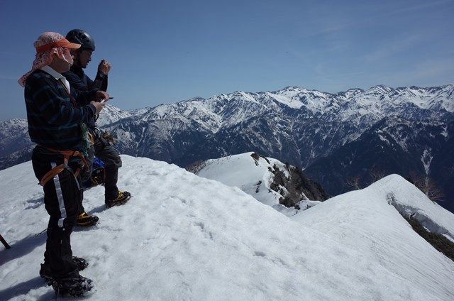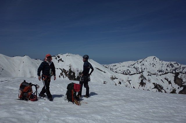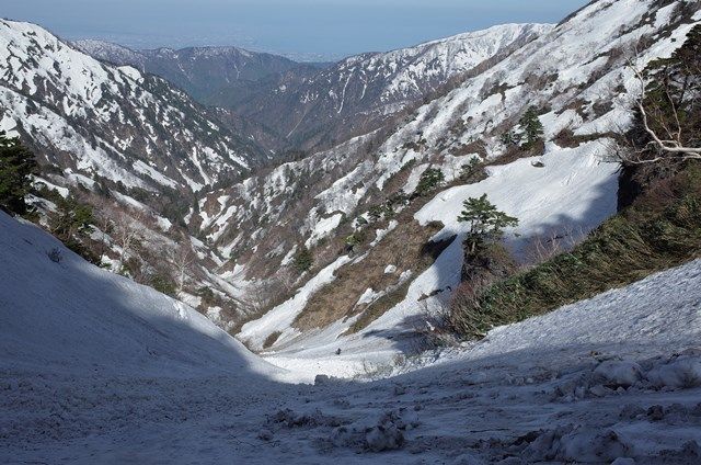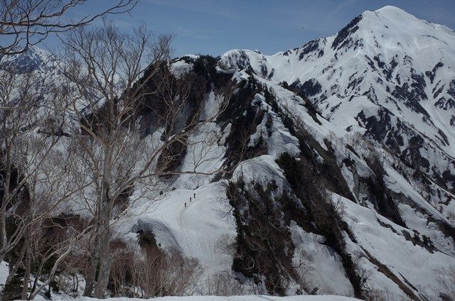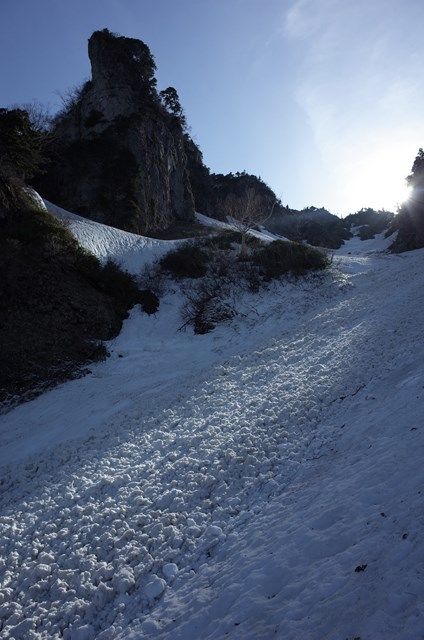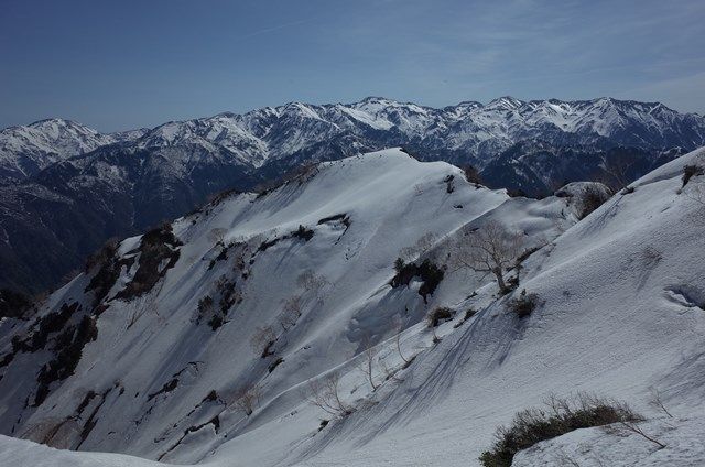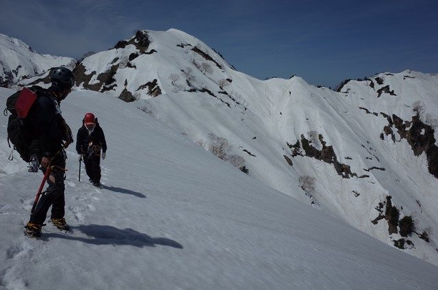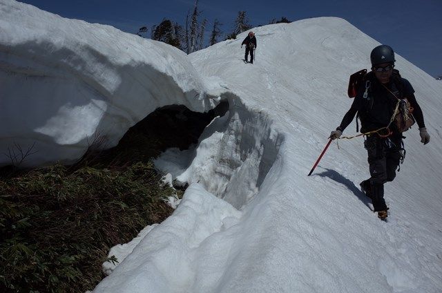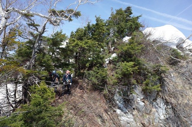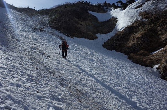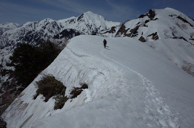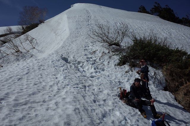 となる。細尾根歩きが厳しいところは北側雪斜面に
