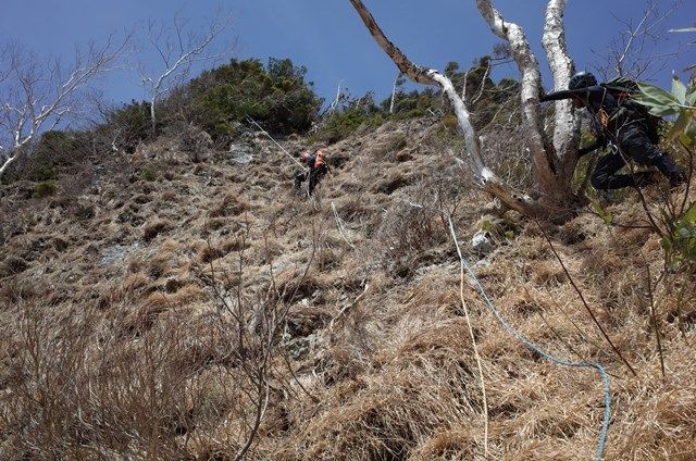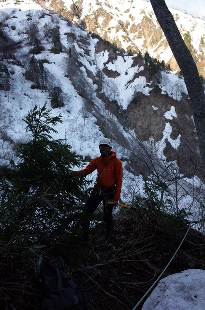 12:45 ウド谷のコルに向けての懸垂下降地点。