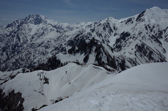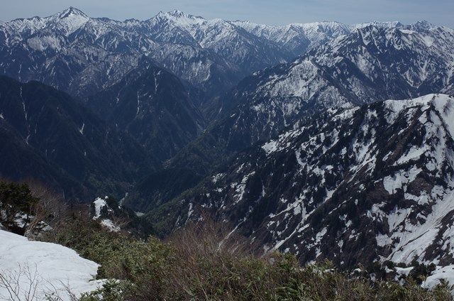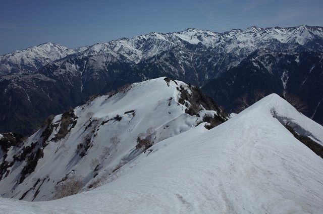 滝倉山山頂から毛勝山方面を見ると、左から大清水